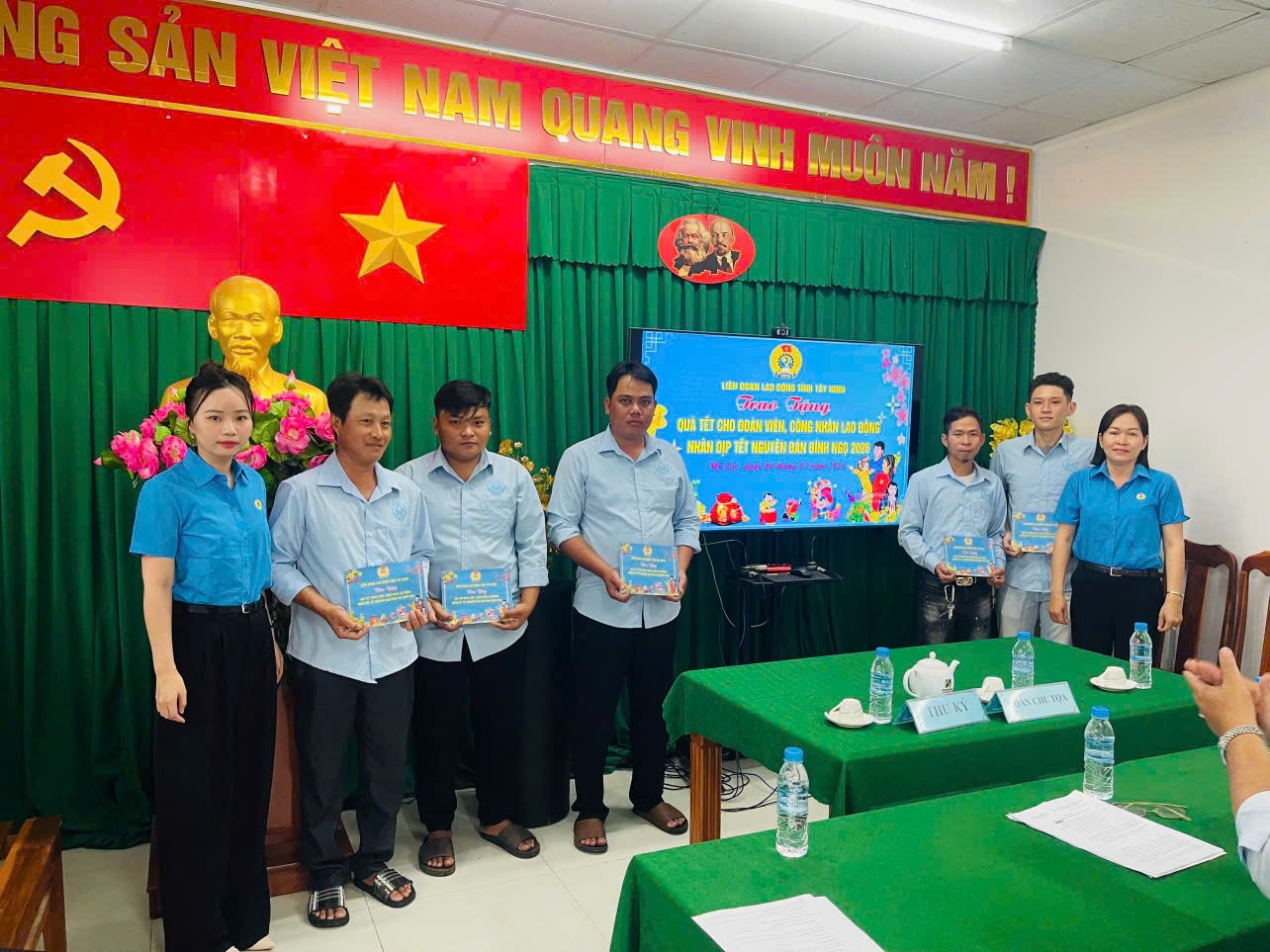 Đại diện Liên đoàn lao động tỉnh Tây Ninh trao quà Tết cho Đoàn viên, CNLĐ