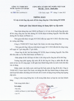 Ngày 05 tháng 01 năm 2023, Công ty TNHH MTV Nước Sạch Cần Giuộc (Canwaco[...]